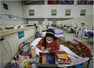Huang Yuting, a third-year senior high school student, prepares for her college entrance exams, which she will take in the summer, in Wuhan Guesthouse Temporary Treatment Center, on February 18, 2020.