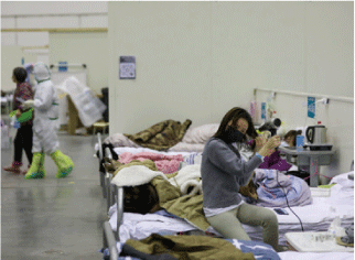 2020年2月17日晚,位于湖北省武汉市的武汉体育中心方舱医院,新冠肺炎患者准备就寝。
