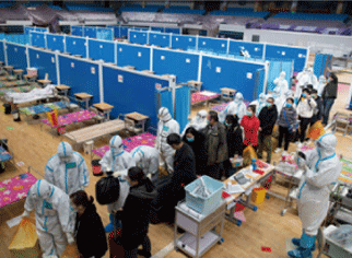 A look inside Wuhan Sports Center Temporary Treatment Center in Wuhan, Hubei Province, on February 17, 2020.